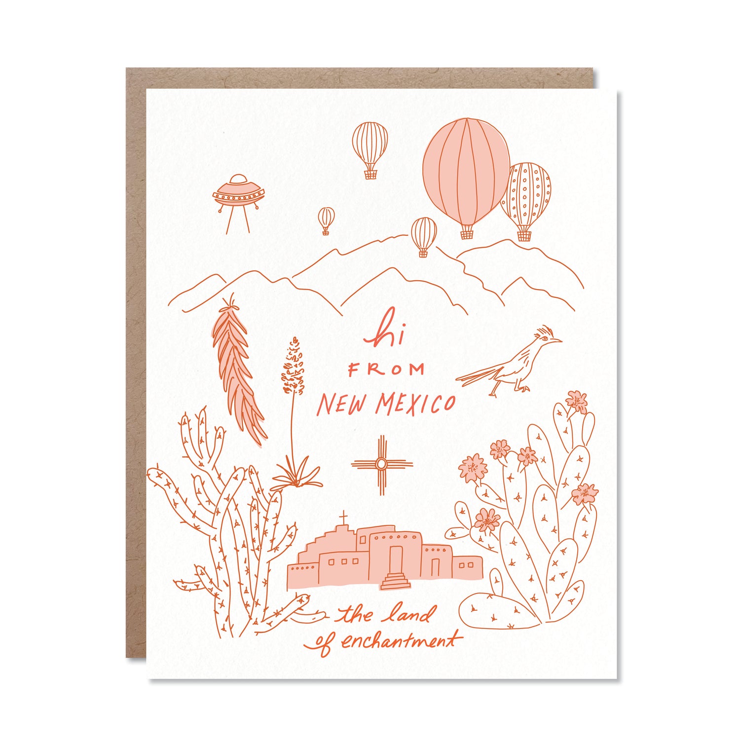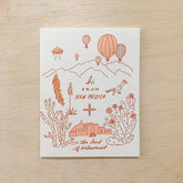 Send some greetings from the land of enchantment, featuring hand drawn illustrations of hot air balloons, ristras, cacti, a road runner, and more!