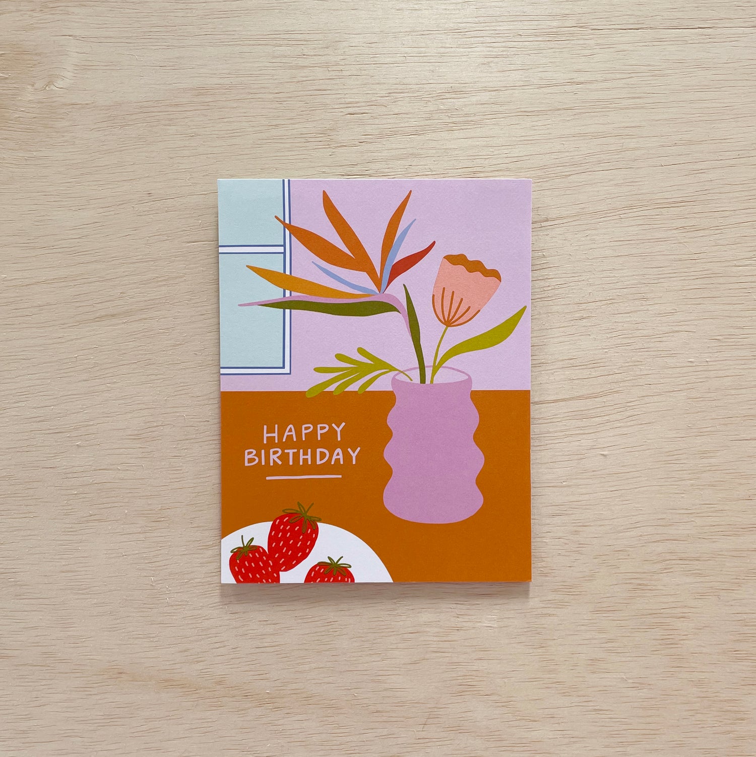 Bring the beauty of a still life painting to the birthday of someone special with this eye-catching birthday card featuring a colorful array of flowers and festive fruit.
