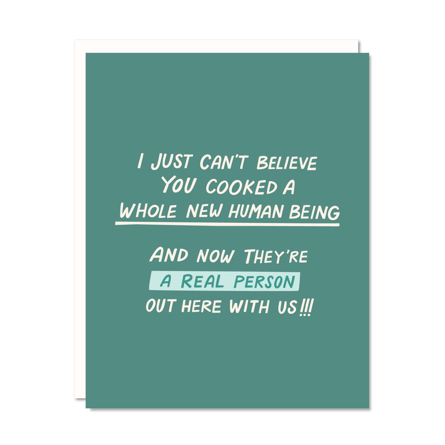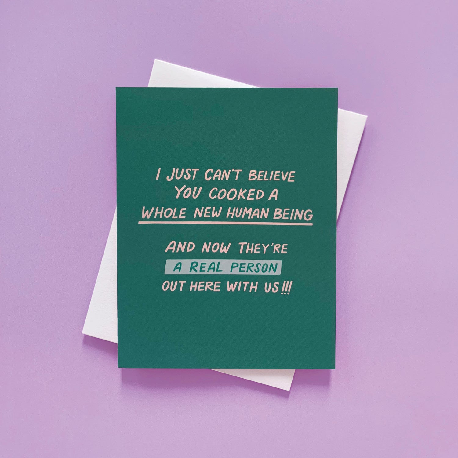 "I just can't believe you cooked a whole new human being and now they're a real person out here with us!!!"