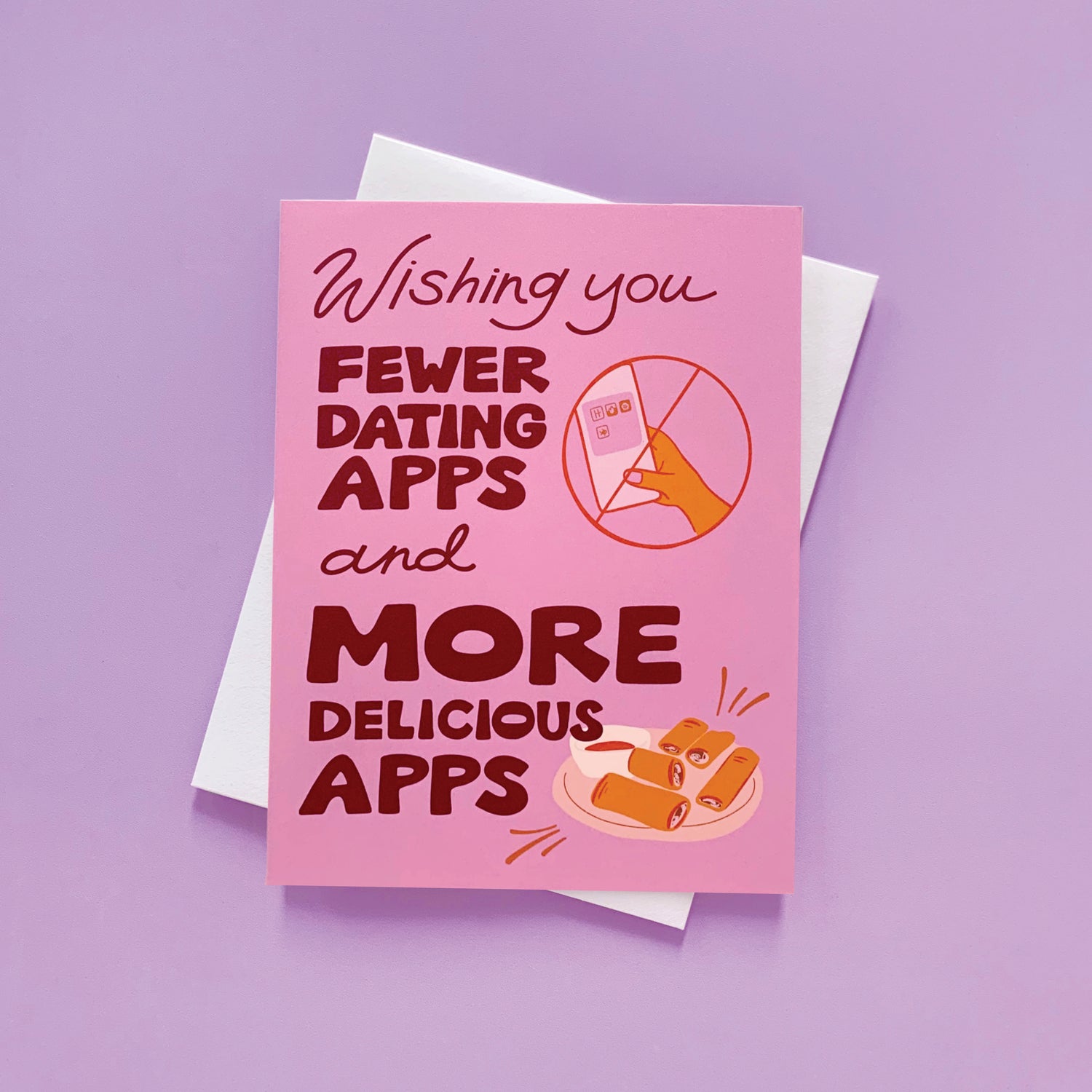 "Wishing you fewer dating apps and more delicious apps"