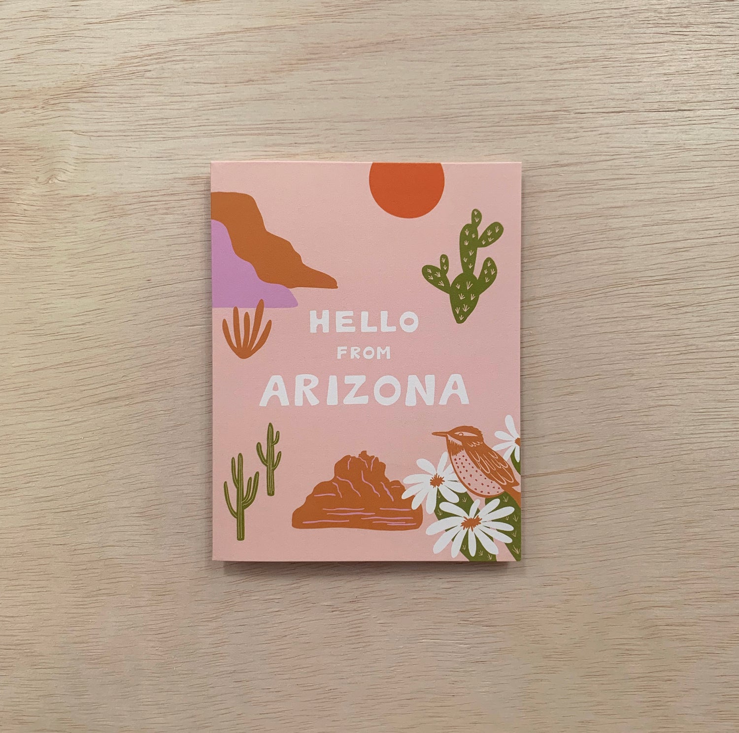Send some greetings from the Grand Canyon state, featuring hand drawn illustrations of a saguaro cactus, a prickly pear cactus, canyons, a cactus wren (the state bird!), and Bell Rock!