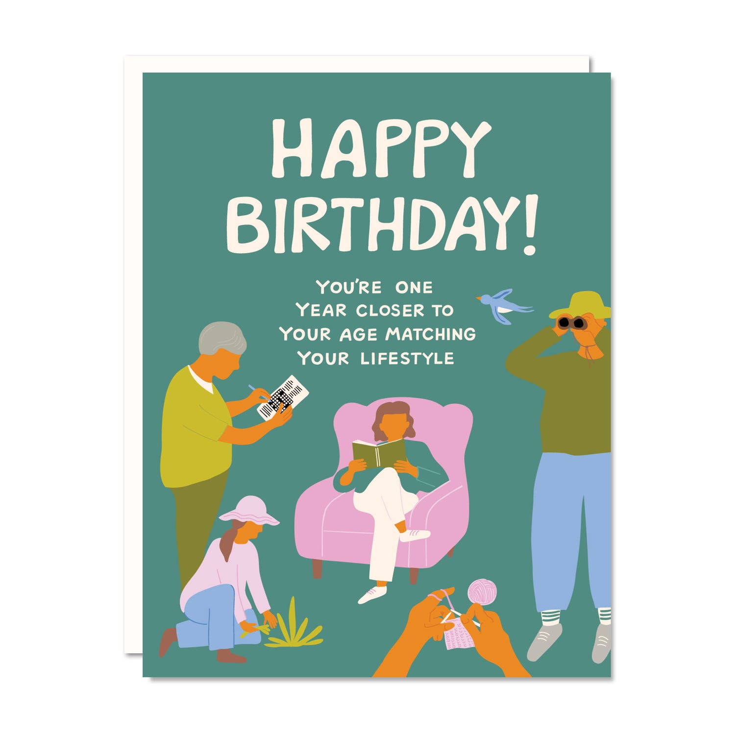 Do you know anyone who is into birding, crosswords, reading, knitting, gardening, or puzzles? Celebrate their retirement lifestyle!
