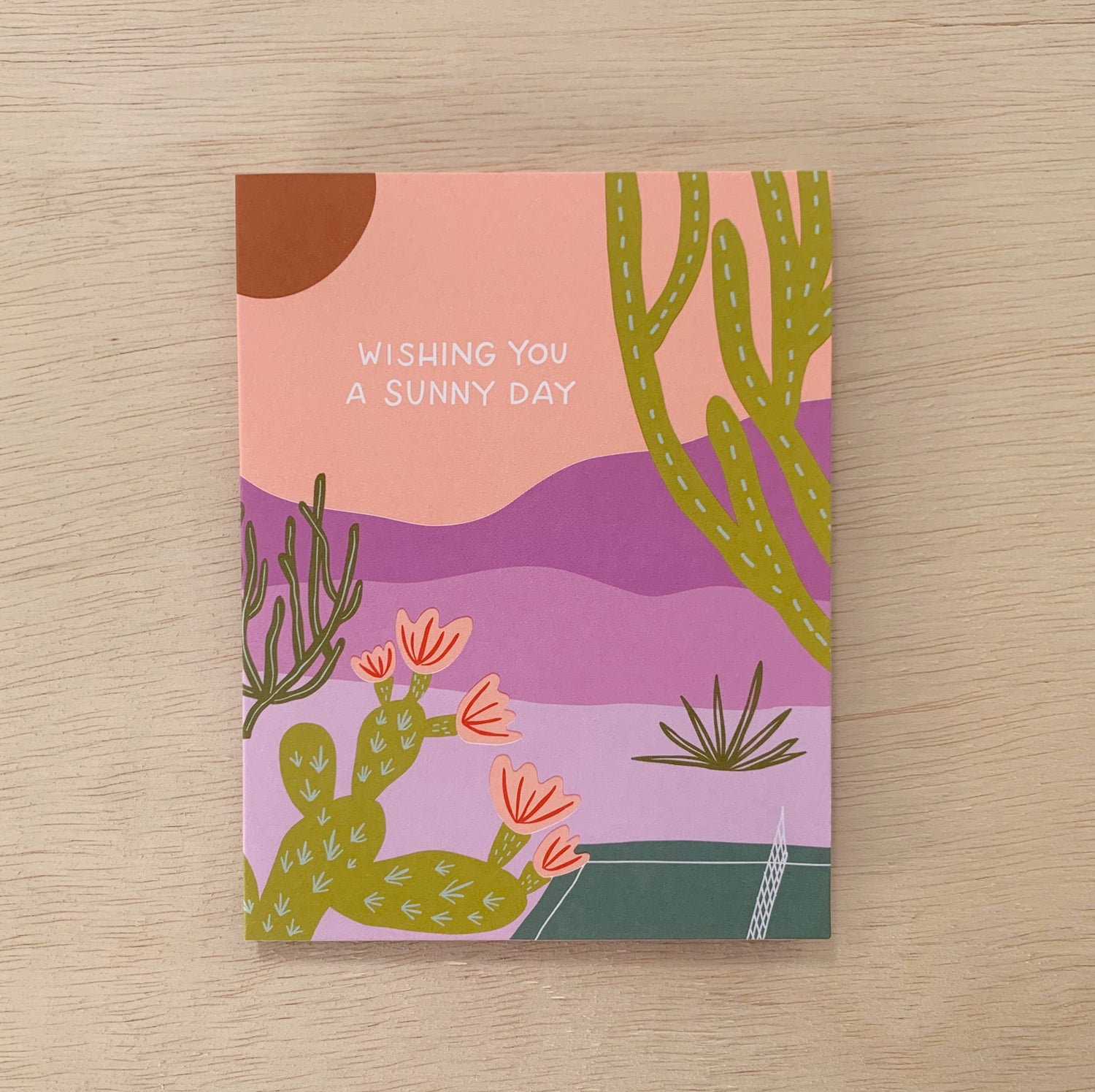 Celebrations are even better in the desert. At a mid-century house. With a pool. And maybe even tennis. But no matter where or why, send sunny wishes with this beautifully illustrated card.