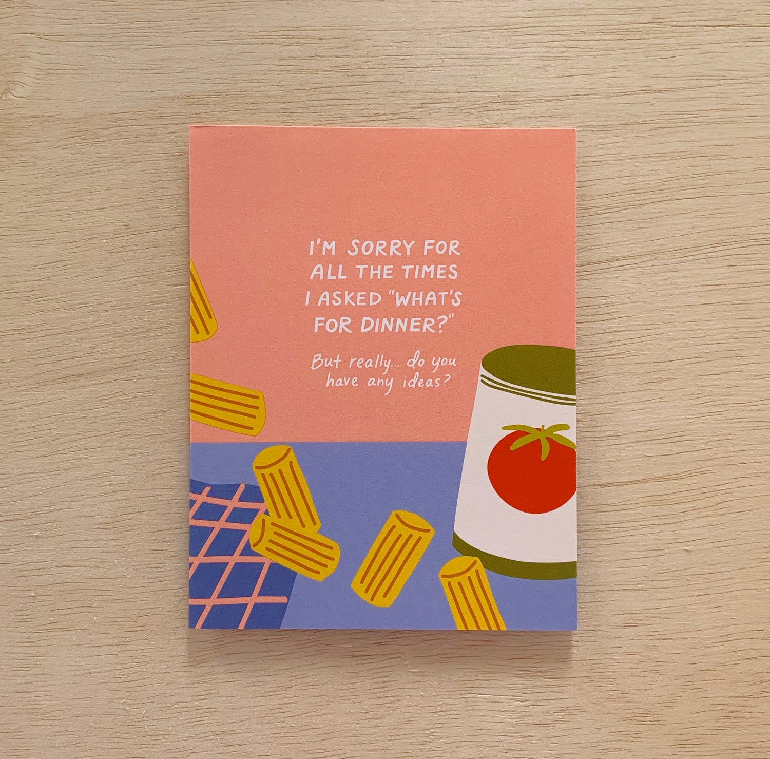 "I'm sorry for all the times I asked 'what's for dinner?' But really...do you have any ideas?"