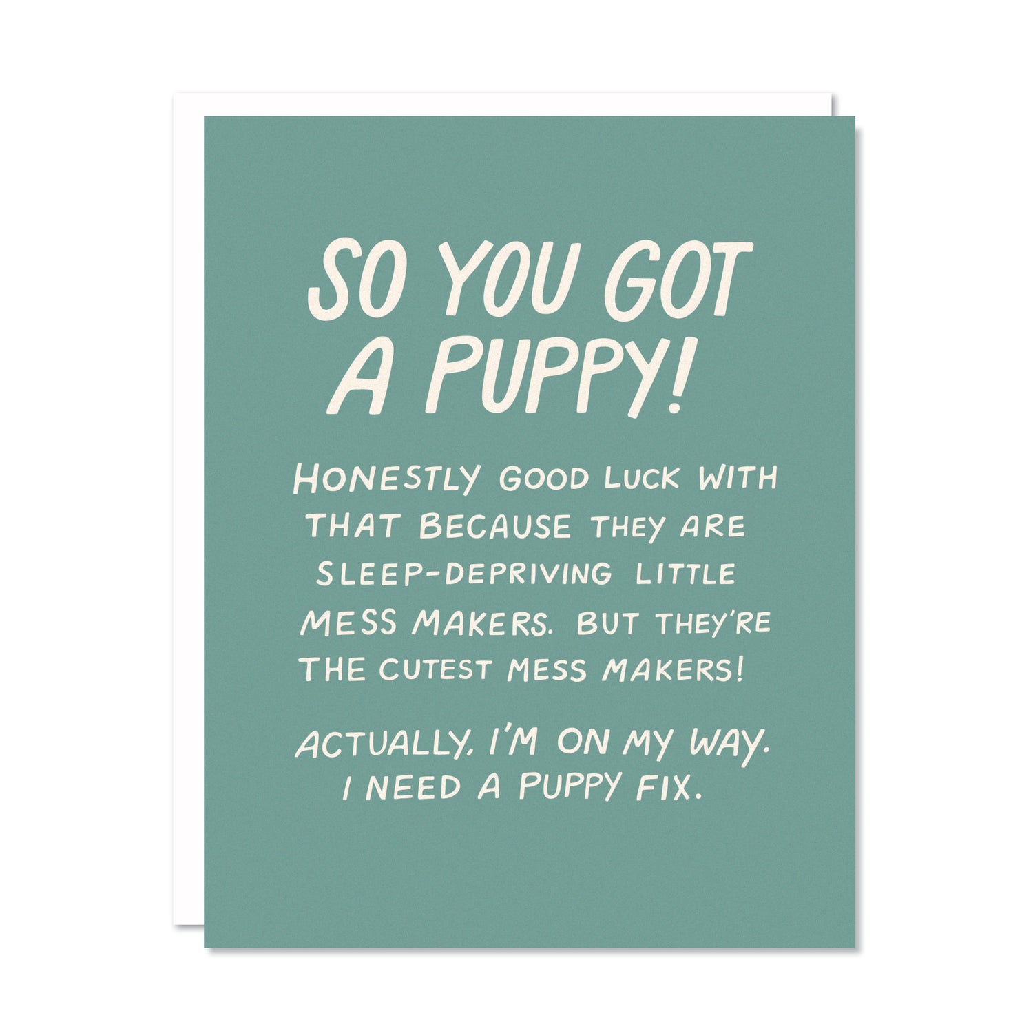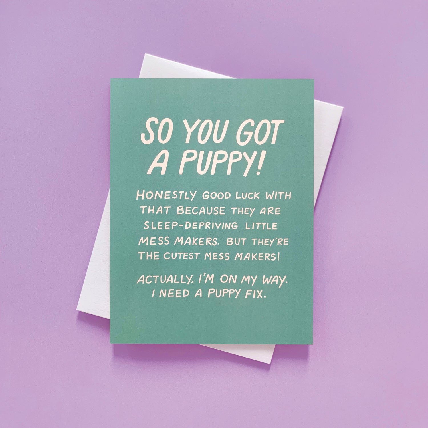 "So you got a puppy! Honestly good luck with that because they are sleep-depriving little mess makers. But they're the cutest mess makers! Actually, I'm on my way. I need a puppy fix."