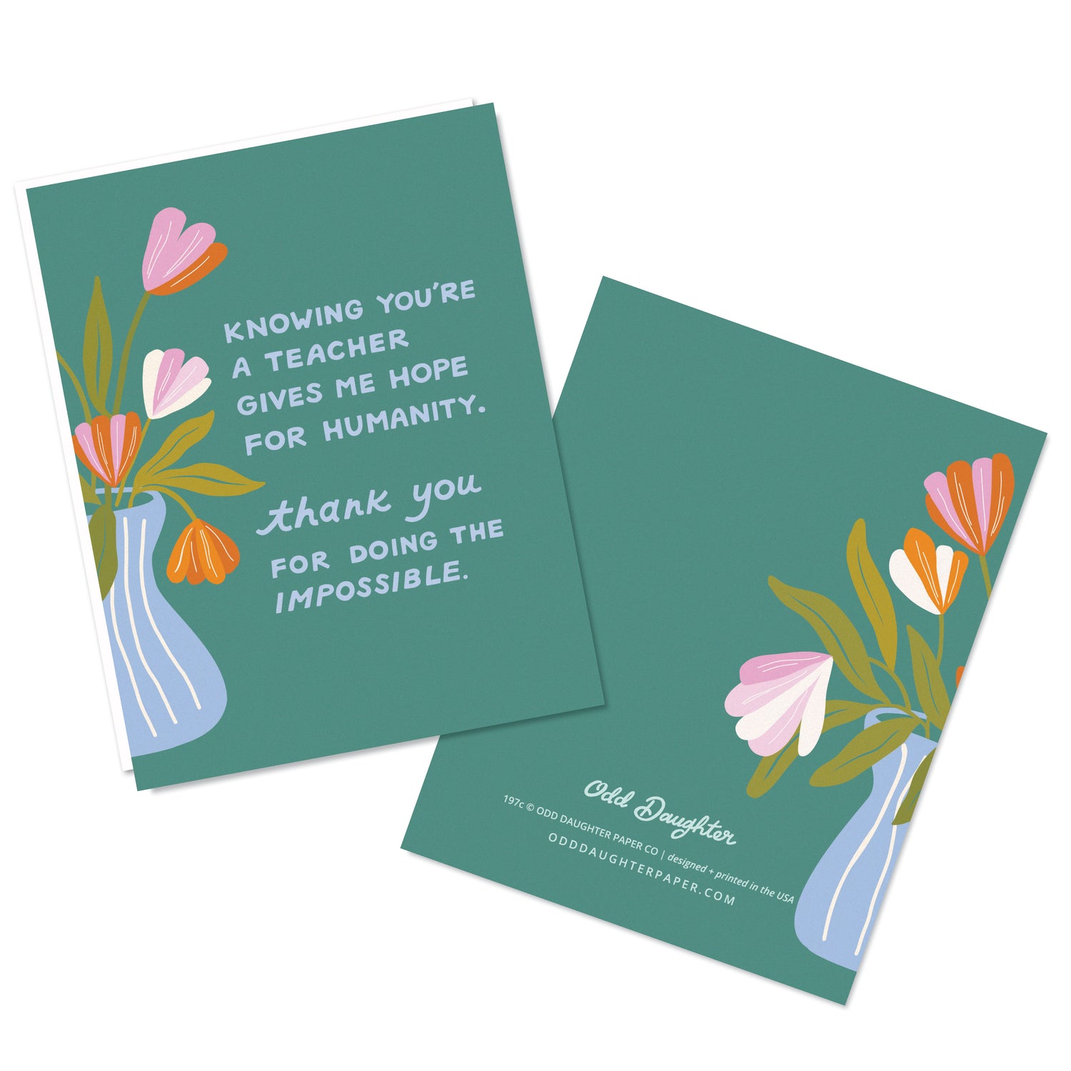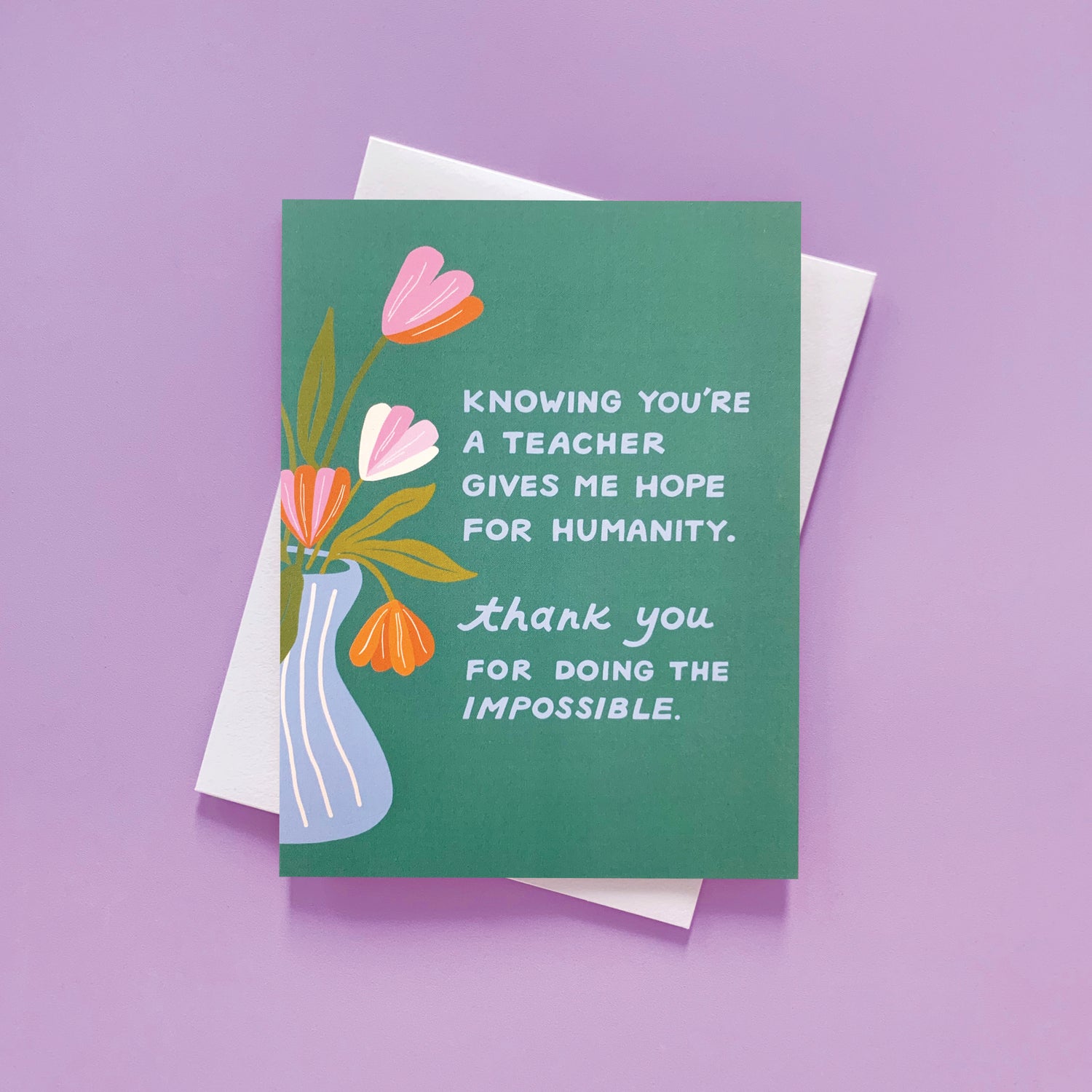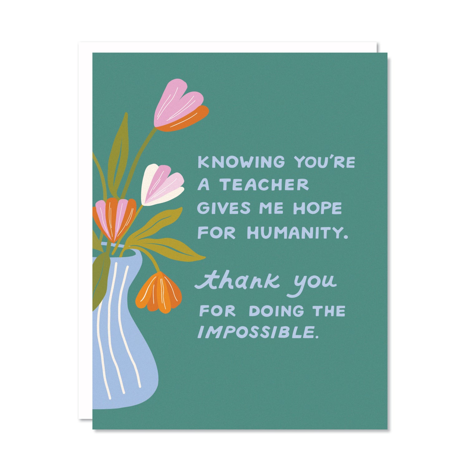 "Knowing you're a teacher gives me hope for humanity. Thank you for doing the impossible."