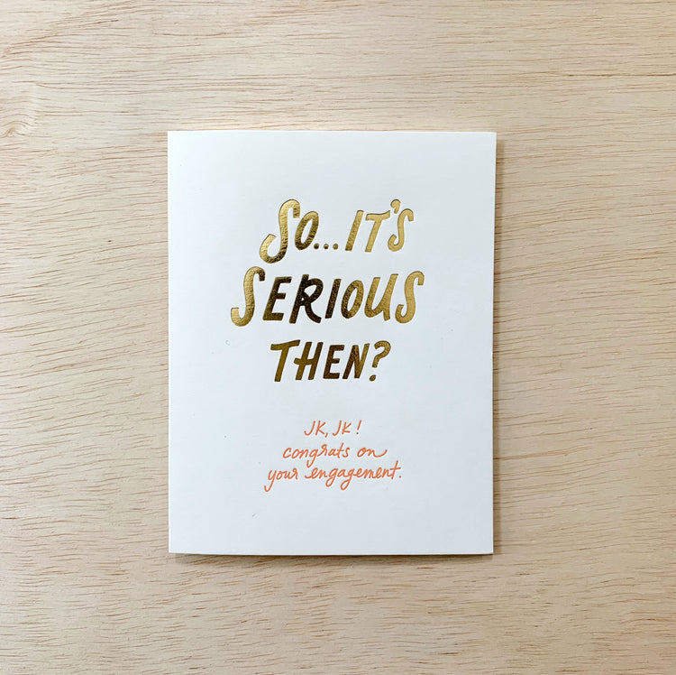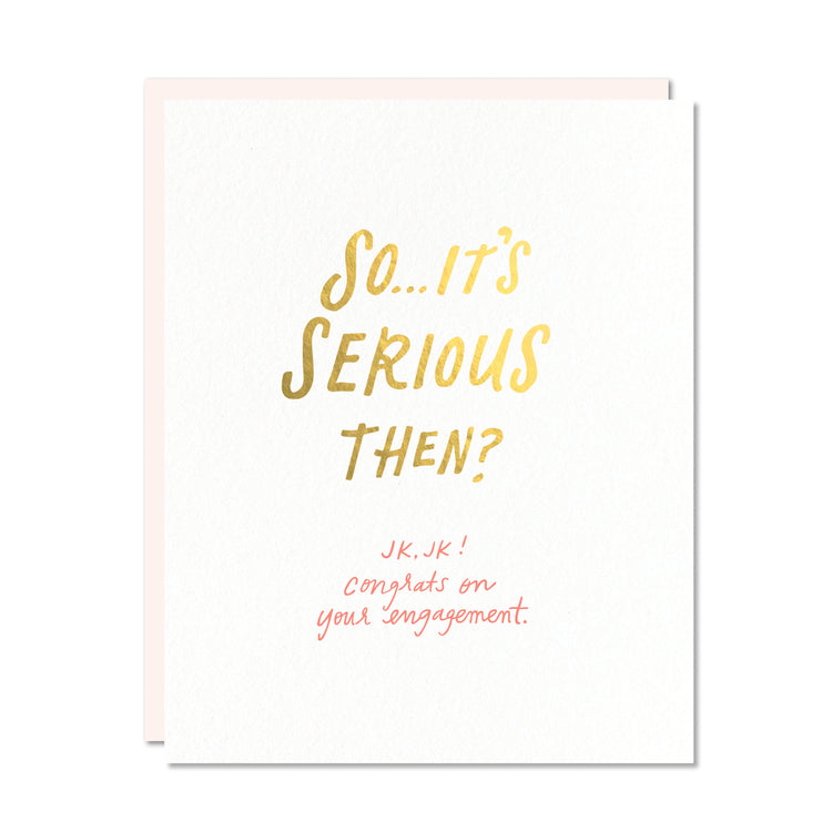 "So...it's serious then? JK, JK! Congrats on your engagement."